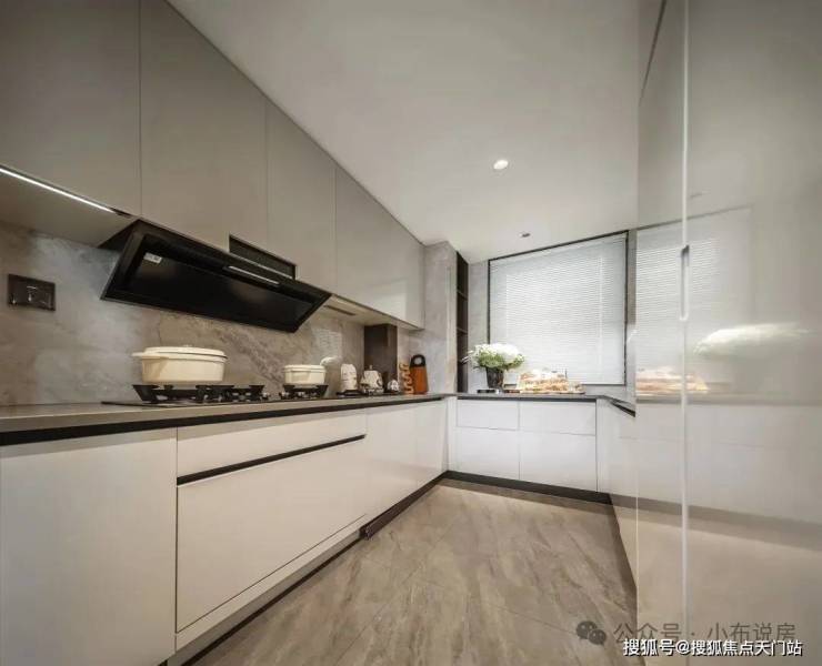 再来看看厨房部分,U型厨房操作动线流畅,厨房全超一线高端品牌,博世燃气灶、油烟机、洗碗机三件套;摩恩水槽、抽拉式水龙头都为大家配齐。