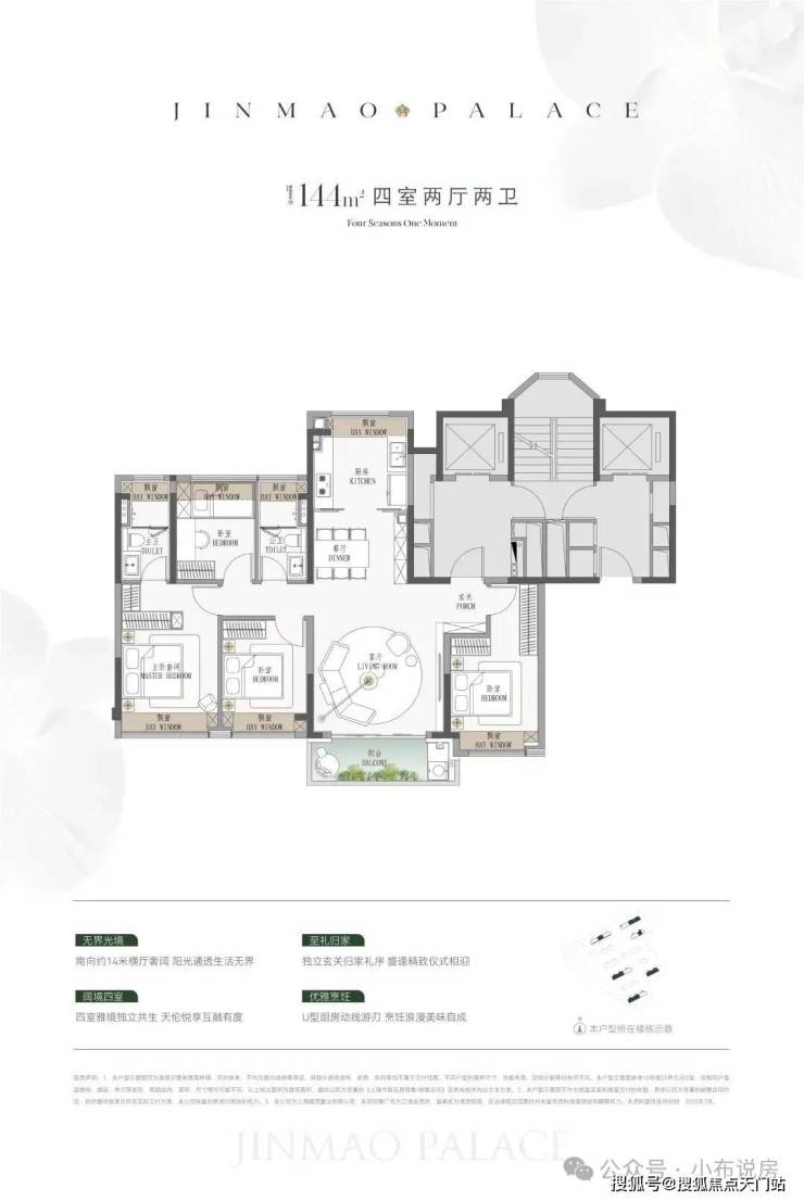 产品方面,预计将推出建面约110-190㎡3至4房产品,四种户型的飘窗与阳台空间都比较大。110㎡户型的阳台将次卧和客厅联通;123㎡是横厅设计;140㎡足足有七个飘窗空间;185㎡各个房间的空间更上一层。