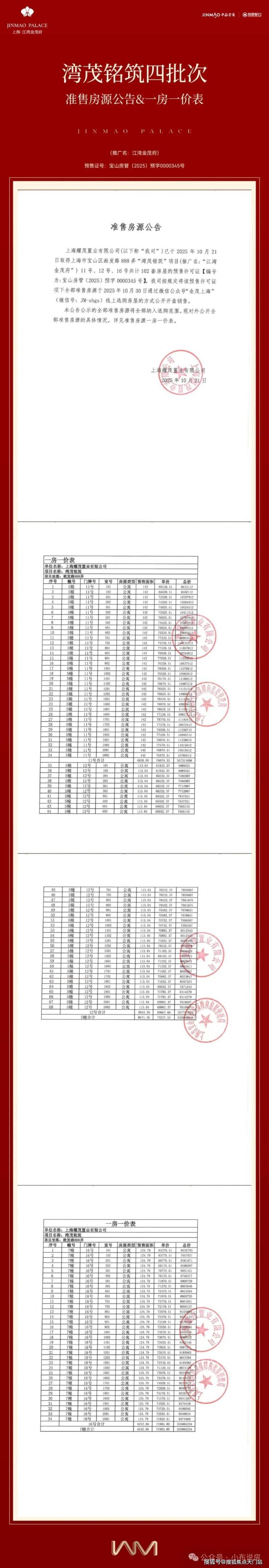 参考江湾金茂府|四批次准售房源公告&一房一价表