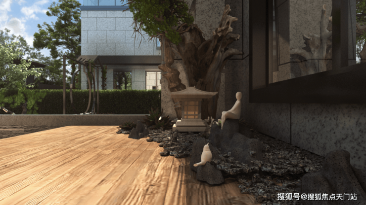 庭前绿地的面积有约40-60㎡,不管侍弄花草、晒晒太阳,抑或叠山理石,都足够了。