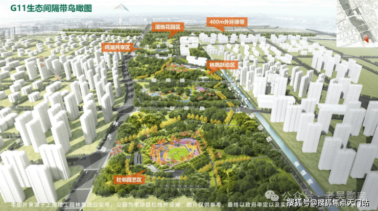 整座公园(在建中)设计了四大功能分区:湿地花园区、鸣湖共享区、林荫跃动区和社邻园艺区,嵌入人性化和生态化的设施,激活场地引人入园,堪称未来业主的休闲放松胜地!