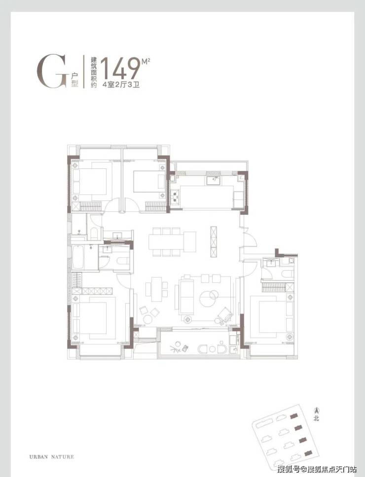 还有部分 建面约149㎡滨水四房大平层 ,仅9-10层,值得注意该户型有 “3卫”