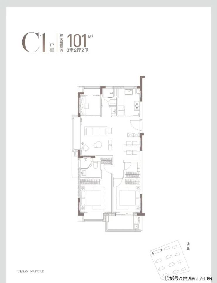 从户型设计看,建面约100、101㎡三房 三开间朝南 ,动静分区、全卧飘窗,主卧就寝区→衣帽间→卫浴间层层递进,仪式感满满。