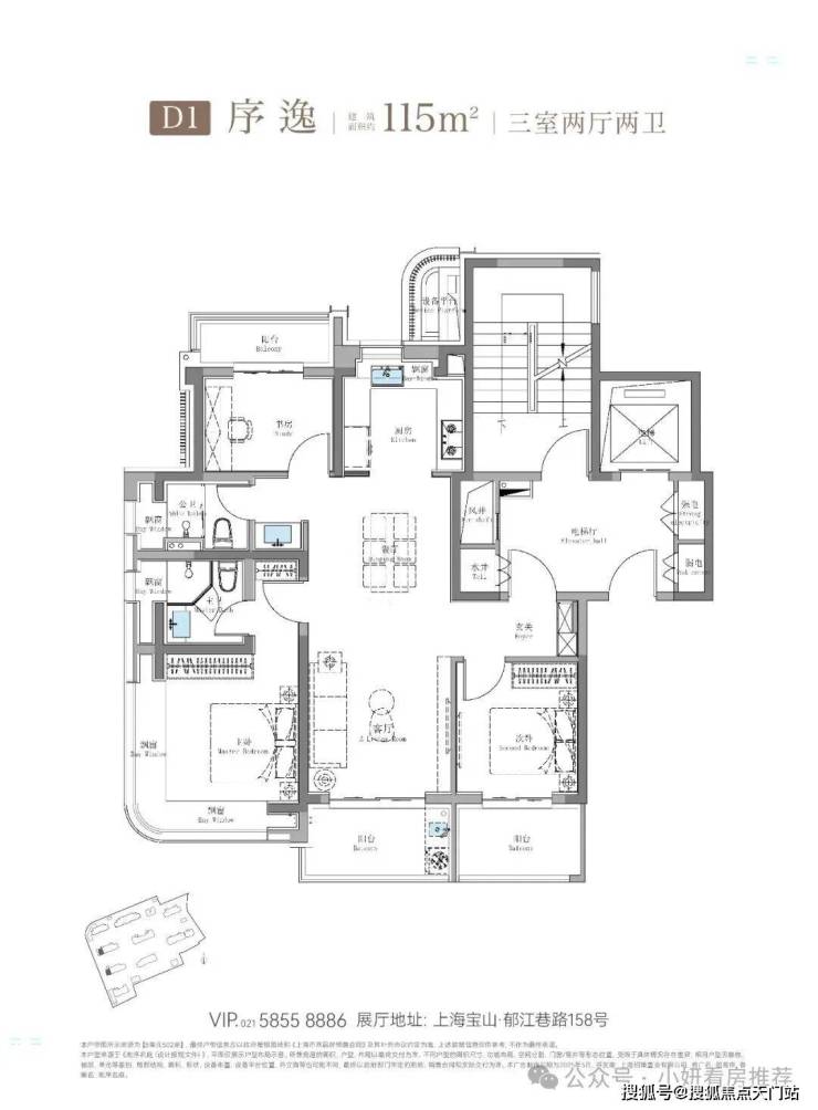 其中建面约115㎡鲲鹏阁三房户型是上海此前未见的全新王炸级产品