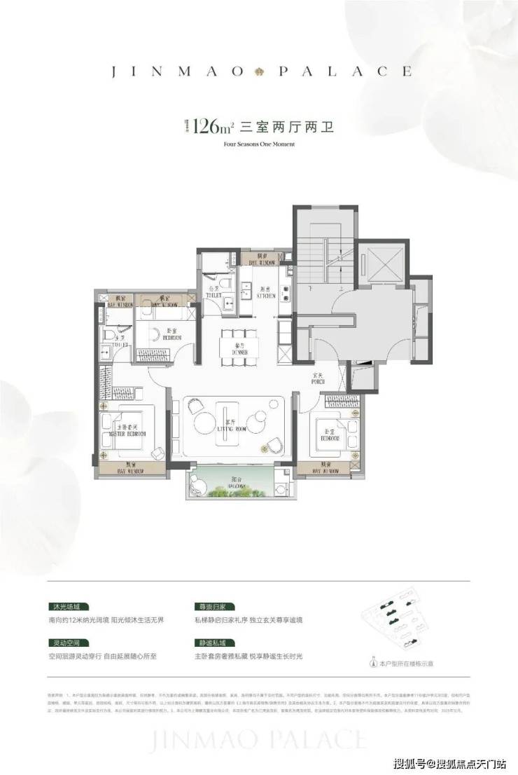 建面约126㎡3房: