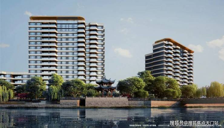 而项目整体建筑布局随河蜿蜒,高低错落的建筑形态也契合了江南水乡的水韵特色。