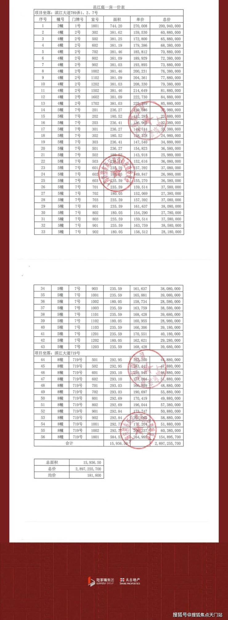 备案价:整体备案均价约 181800 元 /㎡,一房一价