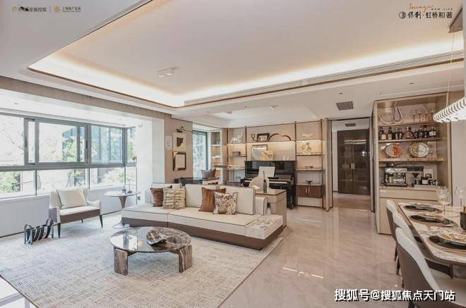 保利虹桥和著售楼处电话:400-1189-515 ◎LDKG大尺度窗墙比:LDKG一体化设计,约 40㎡一体大通厅,南向约3.9 米宽景阳台,连通客厅,可容纳瑜伽、品茶、保利虹桥和著售楼处电话:400-1189-515观景等多种场景;开放式厨房与客厅无缝衔接,让烹饪变成家庭互动的温馨时刻。主卧270°L 型环幕大飘窗,拓宽视野,引入自然光和美景,搭配独立卫浴与奢阔空间,营造私享体验。