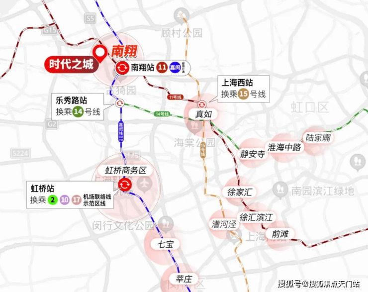 交通上,时代之城所拥有的11号线+嘉闵线双轨通勤,距离地铁11号线陈翔公路站约900米,半小时就能到达徐家汇等市区核心腹地。包括静安寺、徐家汇、徐汇滨江、漕河泾、陆家嘴、新天地都在业主的生活圈内。