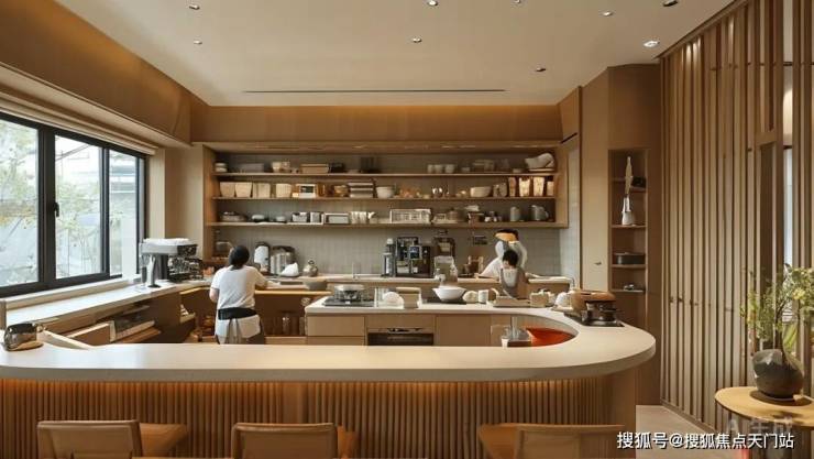 U型厨房:操作台像咖啡馆吧台一样流畅,宝妈做饭时还能盯孩子写作业;