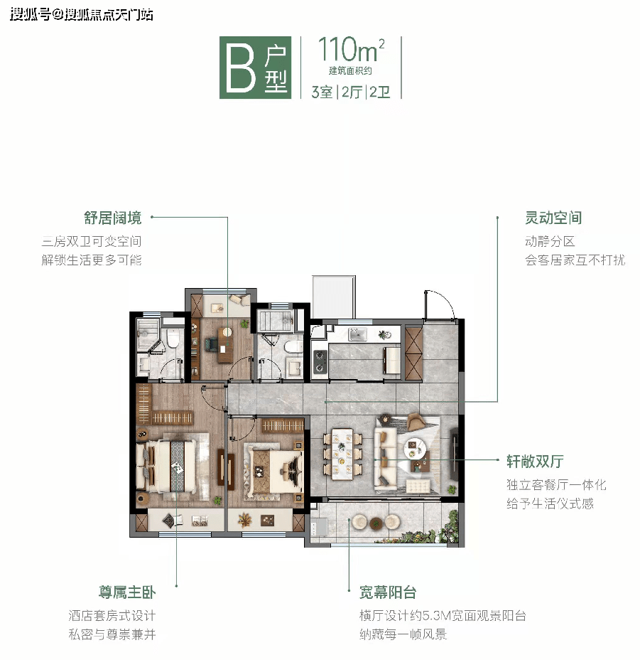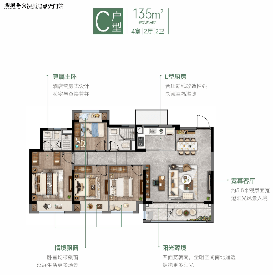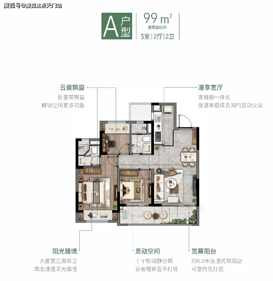 建面约99-135㎡全双卫户型,让居家生活多一份便捷从容;配置中央空调、新风系统,严选一线家装品牌,如方太油烟机、大自然地板、科勒智能马桶盖、美的中央空调等,升级装标标准,提档品质生活。