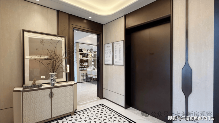 除此之外,酒店式迎宾大堂,仪式感归家入口,温情社区的重要展示;泛会所客厅,通过营造视线关系的尺度与对景的舒适度,营造精致时尚的仪式归家入口空间。