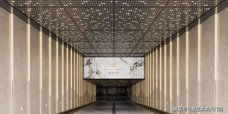 项目一楼设计星级入户大堂!挑高穹顶之下,天然石材与金属线条,交织出当代艺术馆般恢弘气度!
