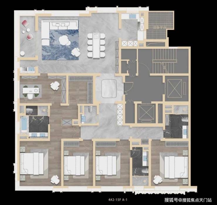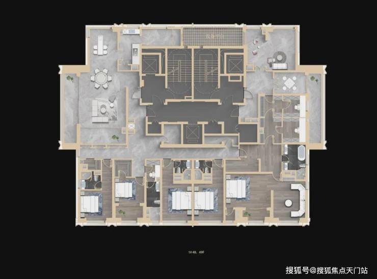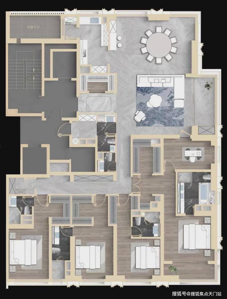 尤其 主卧星级套房 ,配置独立衣帽间、书房,奢华主卫四分离,双台盆+淋浴区+大浴缸+智能马桶,私密性&奢适度无敌;