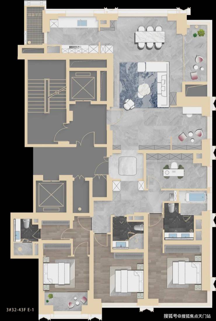 5开间朝南,4卧朝南双卧套房 设计,南向超大采光面,让阳光和清风肆意流淌;