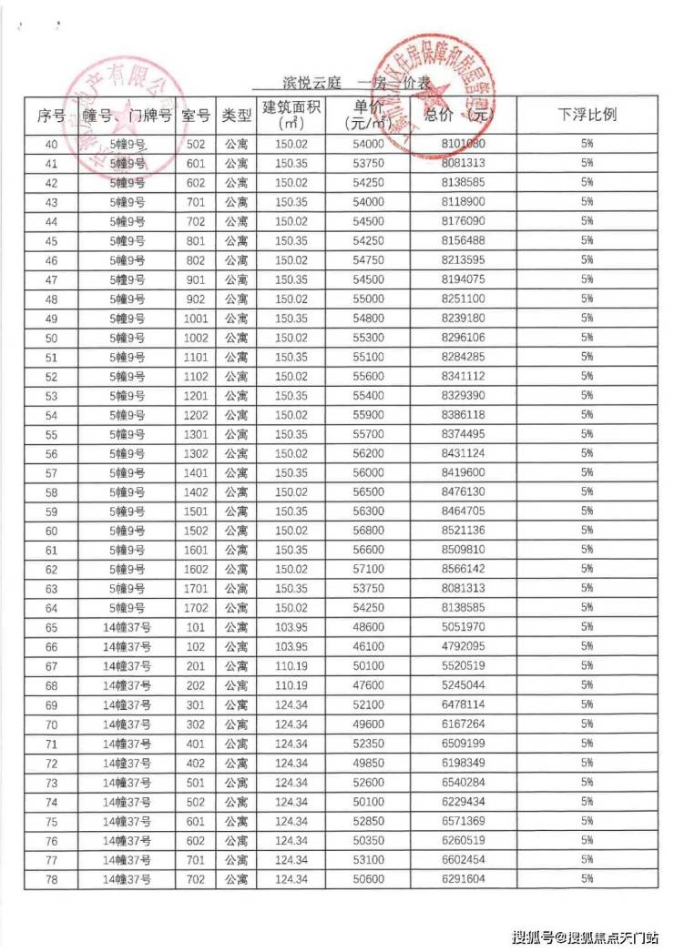 一批次一房一价表: