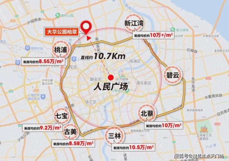 第一,南北高架+中环,大华公园柏翠串联起了上海更昂贵的置业地。