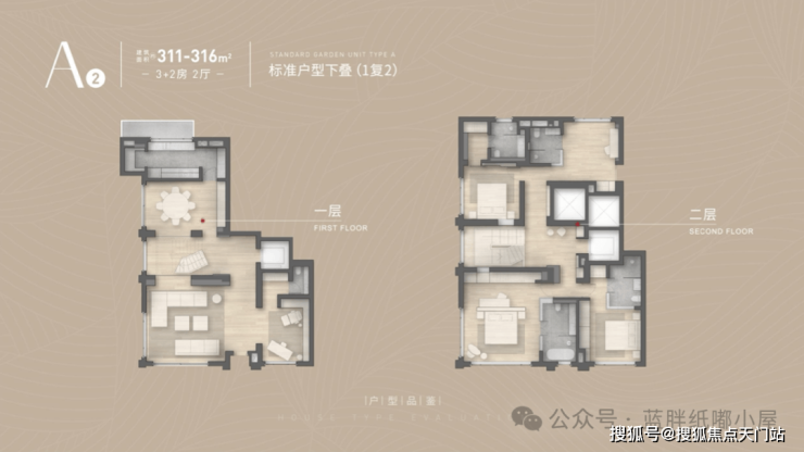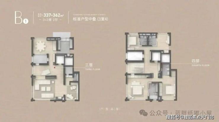 项目主力户型为311-362平方米的叠墅,分为上叠、中叠和下叠三种产品类型。每种户型都采用“垂直功能分区”设计,一层为功能区,二层为休息区,实现动静分离。