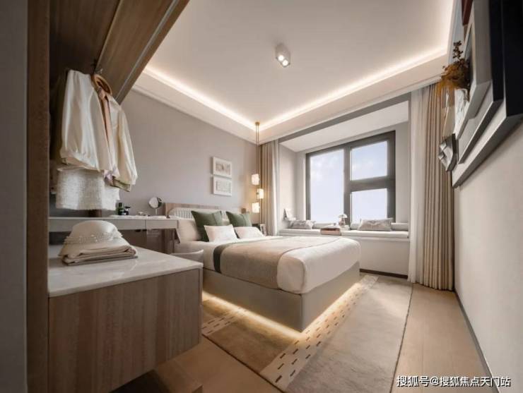 第四个亮点,是 南向主卧套房设计,不仅能放得下2*1.8米双人床,且还能保留约1米的过道;同时带独立卫生间和大飘窗,增强私密性。