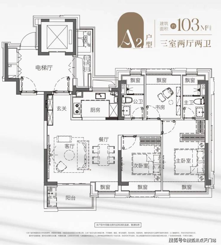 这套建面约103㎡ 动静分离户型 打破常规,兼具 三个房间和南向超阔面宽的横厅 ,以此承载从二人世界到三代同堂的全生命周期需求。