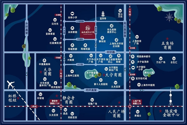 商业配套:1. 超市:家乐福,联华等2. 商圈:日月光,大宁国际业广场、大宁久光、大宁中心广场、宝华国际广场、协信星光广场。大宁成为继南京西路商圈后的静安第二大商圈,生活配套资源极其丰富,非常适合追求高品质生活的人士置业是集宜商、宜住、宜租三位一体,兼具投资和自用的功能品质,同时满足了温馨家居、创意办公、专业投资的多元化需求。