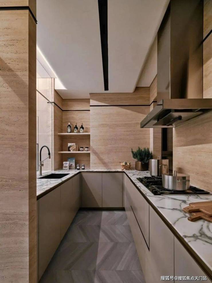 中西厨以玻璃门作为区隔,满足多元化的生活场景。可开可合,更贴近当代都市生活。