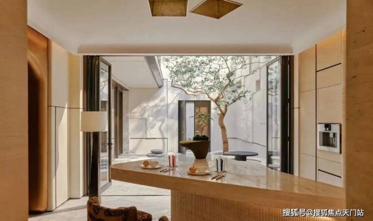 从闹市中步入狭长小径,及至打开自家院落大门,一方庭院映入眼帘,在寸土寸金的闹市中显得弥足珍贵。一汪极简主义的泉流成为点睛之笔,它如许清澈,如许淡然,也如许神秘,抚平都市喧嚣带来宁静。