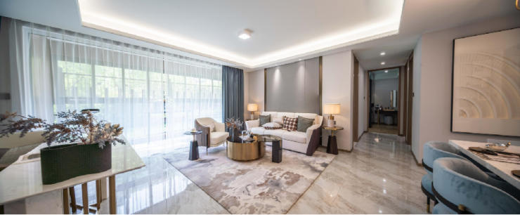 【交付标准】:海贝斯智能门锁+曼瑞德新风系统+贝雷塔地暖+美的空调+方太油烟机和燃气灶+卧室实木复合地板+墙纸