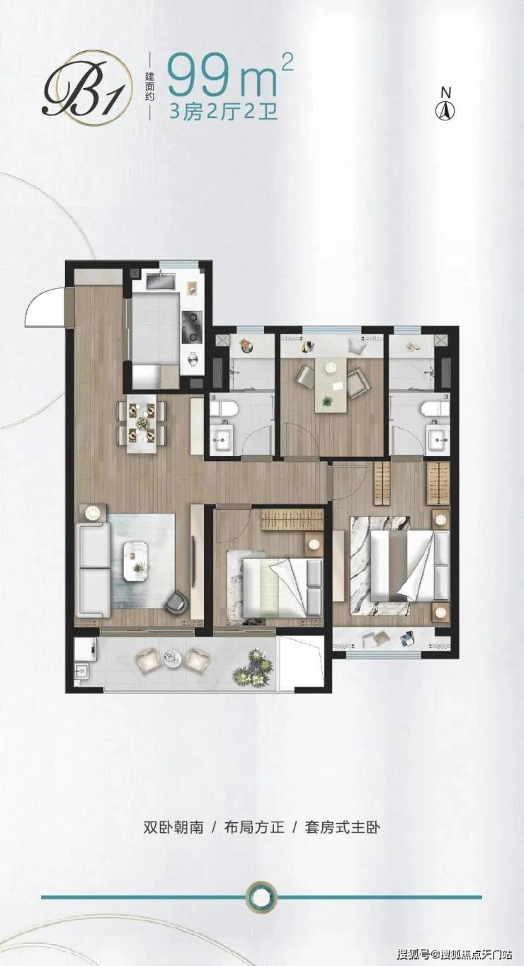 建面约89㎡做3房,功能性上就占尽先机,没想到项目还有1.5卫配置, 主卧升级套房 ,真正实现一步到位!