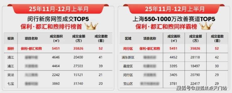 保利·都汇和煦当仁不让!自11月开盘以来,项目不仅强势霸榜闵行区销售金额、成交面积、成交套数榜单,更在上海550-1000万级改善赛道中脱颖而出,问鼎25年11-12月上半月销售三冠王,用硬核数据诠释何为“现象级热盘”。