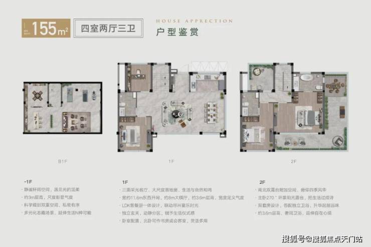 首层约3.6米的尊享层高,通过全方位的视野, 将别墅产品的独特气质展现得淋漓尽致。