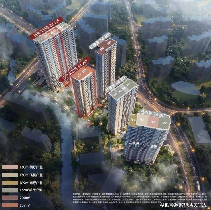 四批次推售2#、5#楼计103套房源!类一梯一户无连廊设计、装标4000元/m²;前期少量建面约130-200m²3-4房!