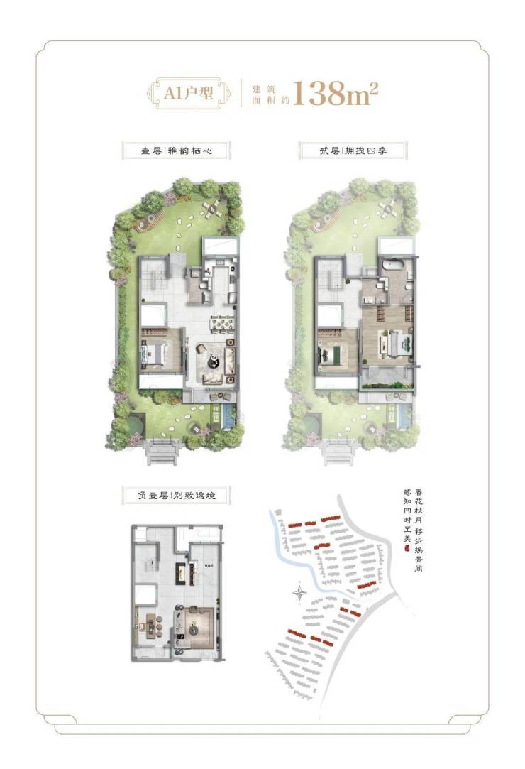 项目二期为纯别墅产品,社区容积率约0.41,面积段约为138-455㎡之间不等,不仅延续了一期多重景观结构,出市入室的仪式感满满,更是提升为围合式院落结构,增加了转角街巷之间的景观点,细节之处尽显大宅风范和业主的雍容气度。除常规的有天有地之外,还配有超高层高地下室及露台。