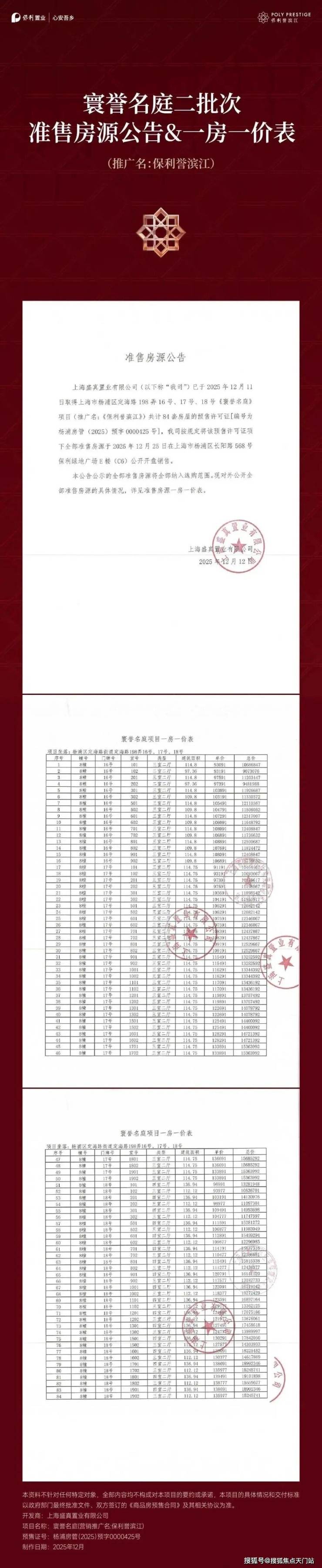 杨浦内中环誉系3.0先锋公园奢宅「保利誉滨江」加推建面约97-137㎡3-4房,均价11.55万/㎡,总价907万起;多阳台、第一界面全铝板+玻璃+石材组合、约3000㎡会所。保利誉滨江售楼处官方电话☎️:400-866-9938(欢迎致电)