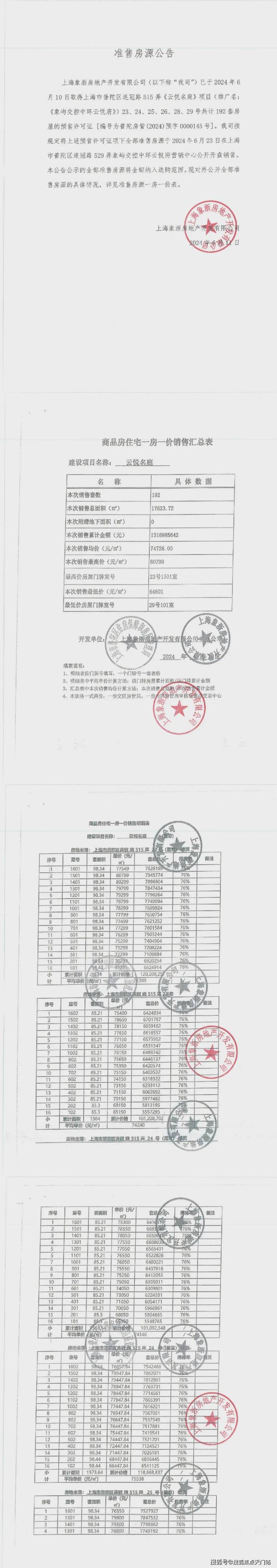 最新一房一价表:
