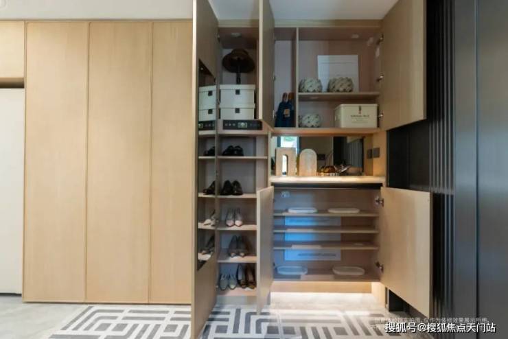 此外,入户玄关的设计既是家与外部的缓冲空间,也保证了主人的私密空间