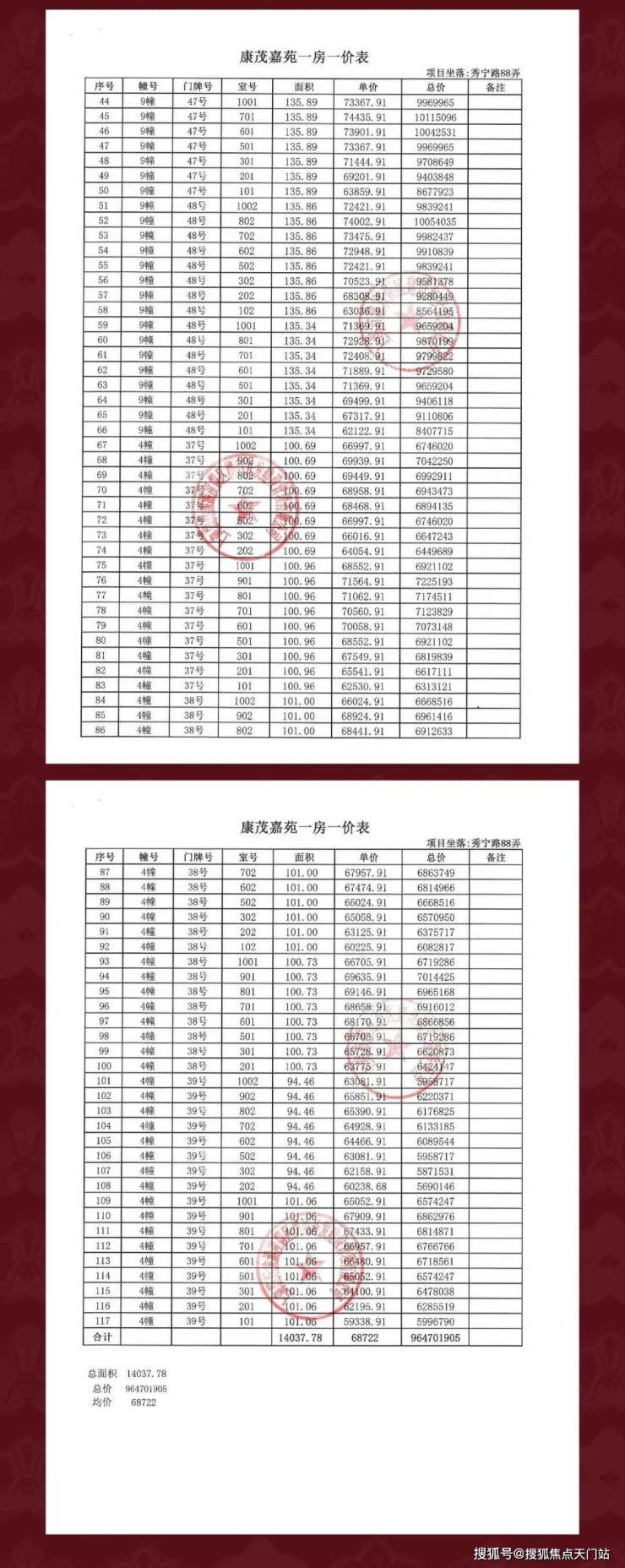 最新一房一价如下👇