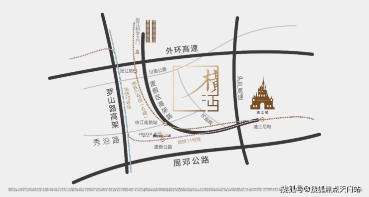 直线距离张江科学之门(在建)约4.8km,直线距离迪士尼乐园约2km,这样的天赋地段,造就了项目独有的红盘基因。