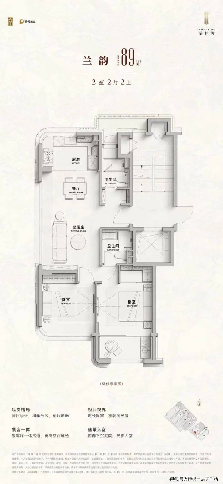 超大尺度的客餐厅,全明厨房,通过巧妙的布局,将居住、生活、社交等功能完美融合;