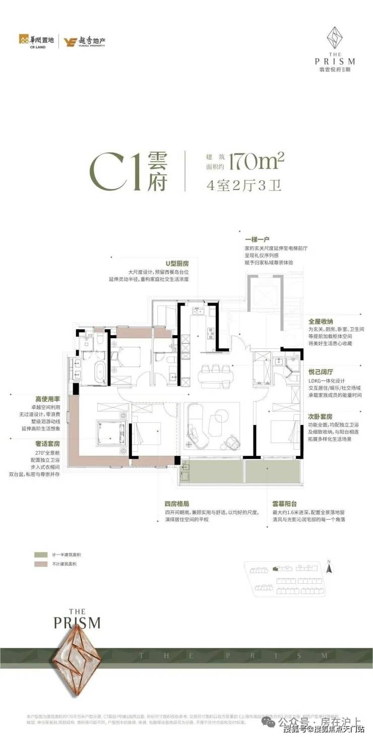 建面约113㎡3房,约170㎡东边套