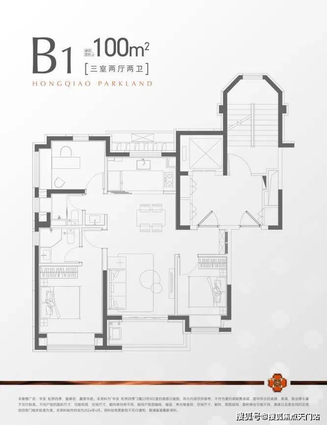 而在华发虹桥四季在售户型中,建面约100㎡的三房两厅两卫无疑是主力户型,它不仅是居住空间的组合,更是对品质生活的深度解读。它以其功能齐全的“飞机户型”格局和精装细节,成为备受市场青睐的明星产品。