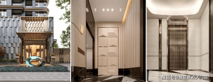 社区复刻和平饭店酒店式门庭 ,引入酒店式双线归家仪序, 五进入户礼序+四重车仪之道 ,重现海派隐奢归家之路