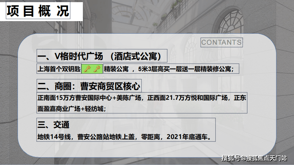 项目说辞:总占地1.8万方,总建面3.2万方,由1.5万商业中心加3层4层220套层高5.3米精装公寓组成,2022年1月30日交付