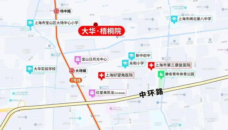 医疗方面:约3.5公里范围内就有宝山区大场医院、上海交通大学医学院附属仁济医院宝山分院,高质医疗资源,为您和家人的健康保驾护航。