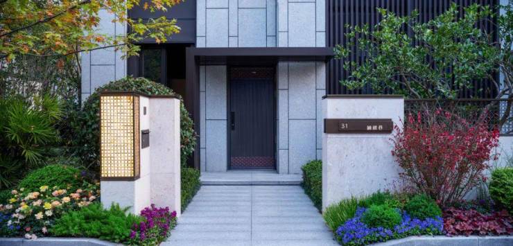 联排皆是独门独户,入户设置在建筑主体北侧,门扇精美蚀刻工艺,尽显雅奢品质。