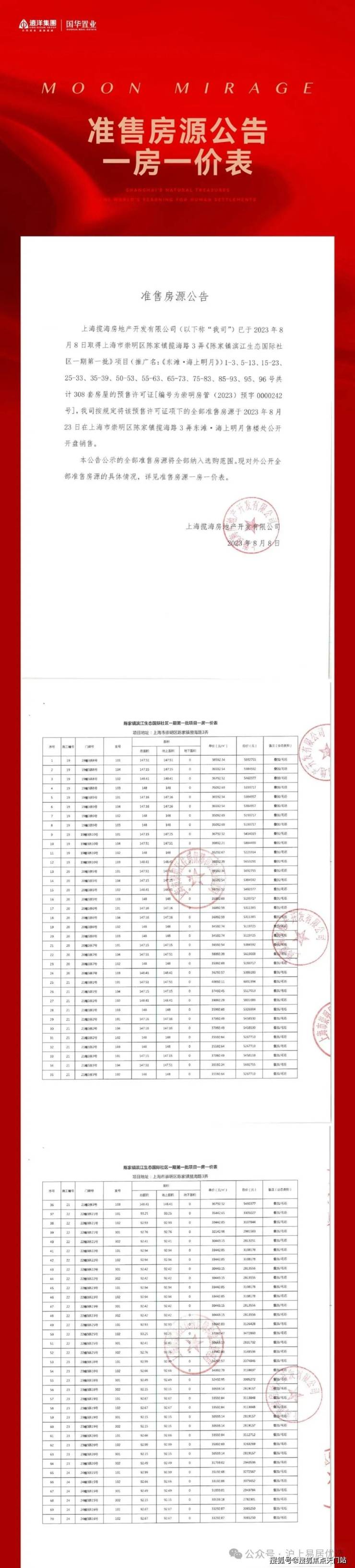 一房一价表公示: