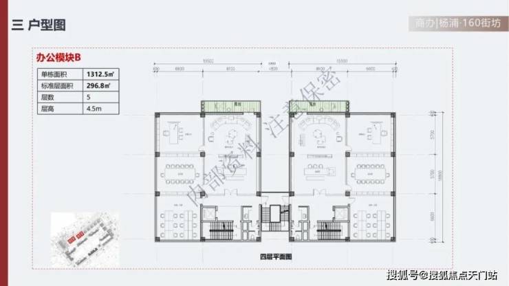 地上5层+地下1层,地上层高4.5米,地下层高5.25米。