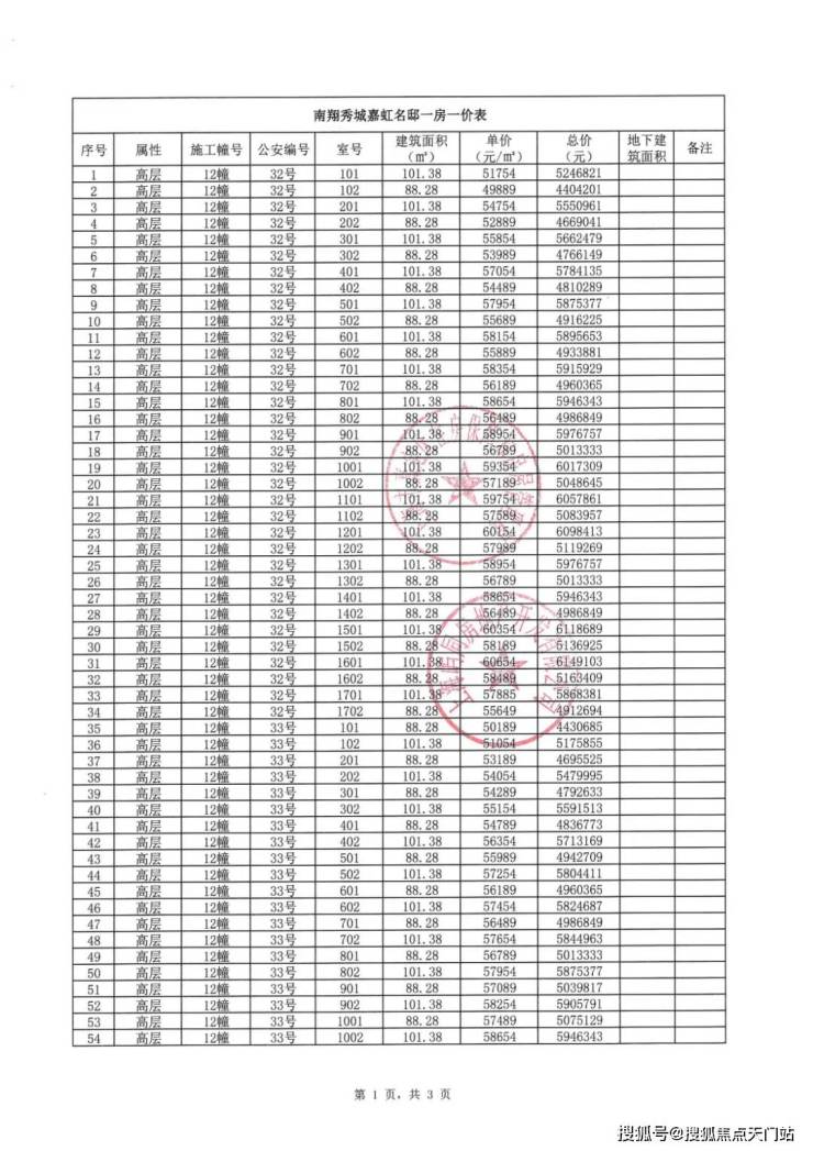 一房一价表: