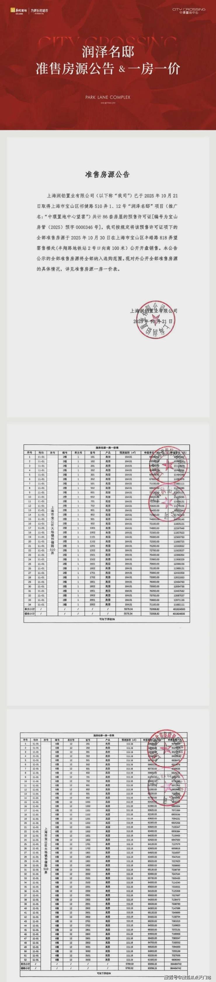 宝山南大「中環置地中心·望雲」收官加推约108-165㎡3-4房;均价67477元/㎡!