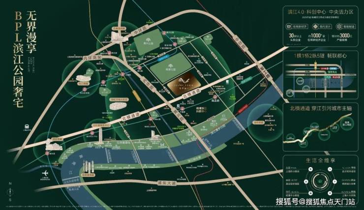 北横通道: 继延安路高架后,上海第二条东西向财富积聚中轴线,平行于江河流向,串联虹桥-长风-苏河湾-北外滩-杨浦滨江等上海都心位置